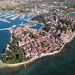 Ferienwohnung Sommer位于Novigrad Istria,在Plodine Novigrad附近.海滨的住宿场所配有免费私人停车场,高尔夫球场和日光浴. 住宿场所享有大海景致,设有公共厨房,距离伊斯特拉兰迪亚水上乐园有4.6公里.